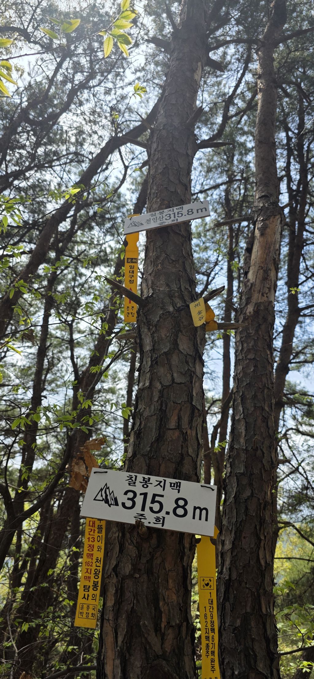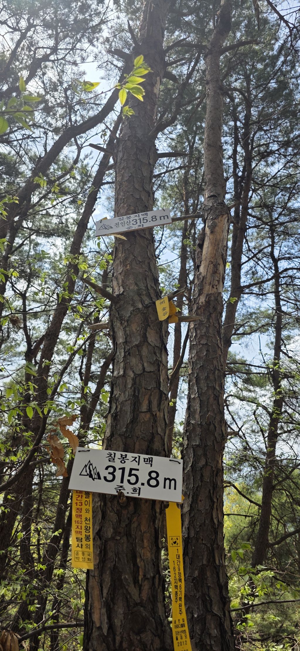 - 진행하여 적산 (510.1m) 지나고 268.9 봉을 지나고 고름재이고 다시 치고 오르고 에그너재입니다 요기서 점심을 먹기 위해 차량으로 이동하여 점심을 매식하고 다시 와서 진행입니다 임도로 치고 오르고 묘지방향으로 오르면 315.8 봉입니다