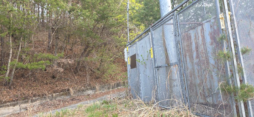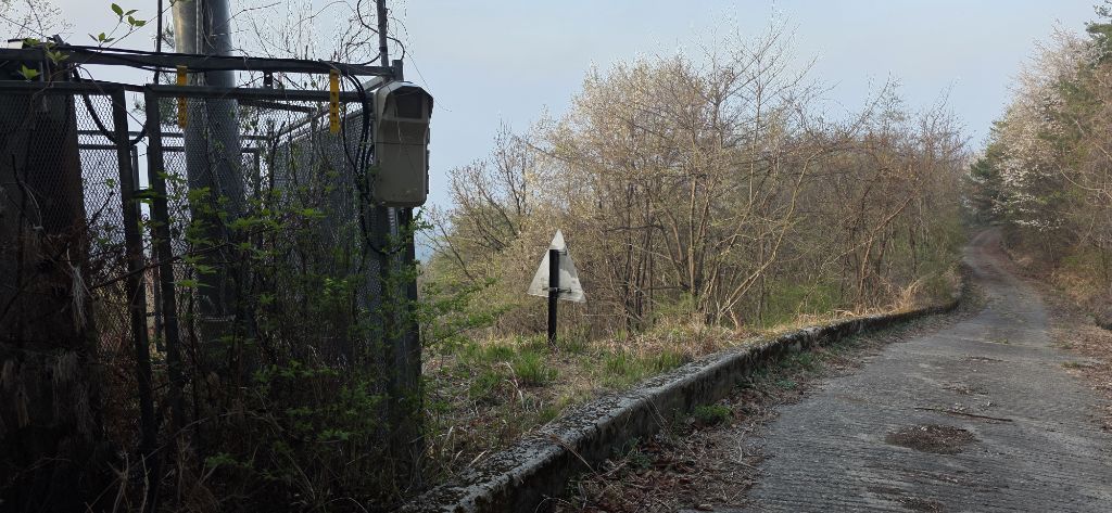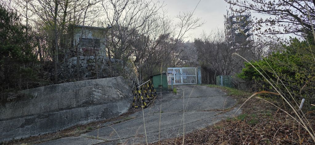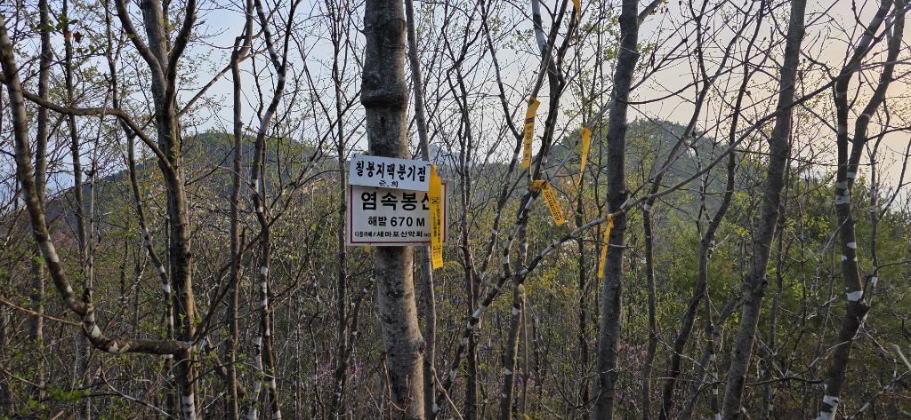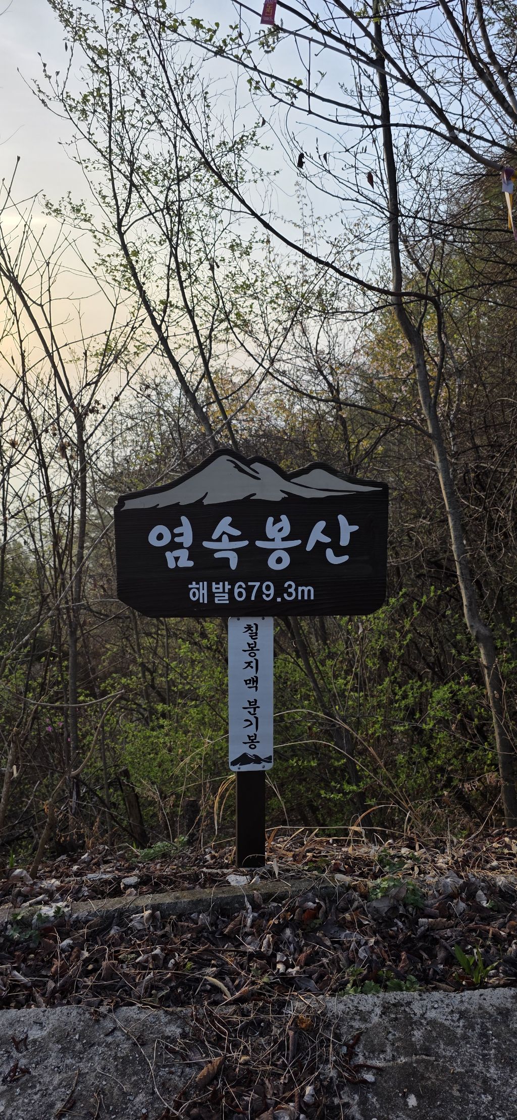 - 염속봉산 방향으로 치고 오르고 한참을 오르자 염속봉산(679.3m) 방송국 안테나와 임도가 나옵니다 좌측으로 내려서 계단을 오르자 지맥 분기점 푯말이 있습니다 정상은 방송국 안테나로 철조망이 있어서 진행이 어려워 여기에 분기점을 달아놓았습니다