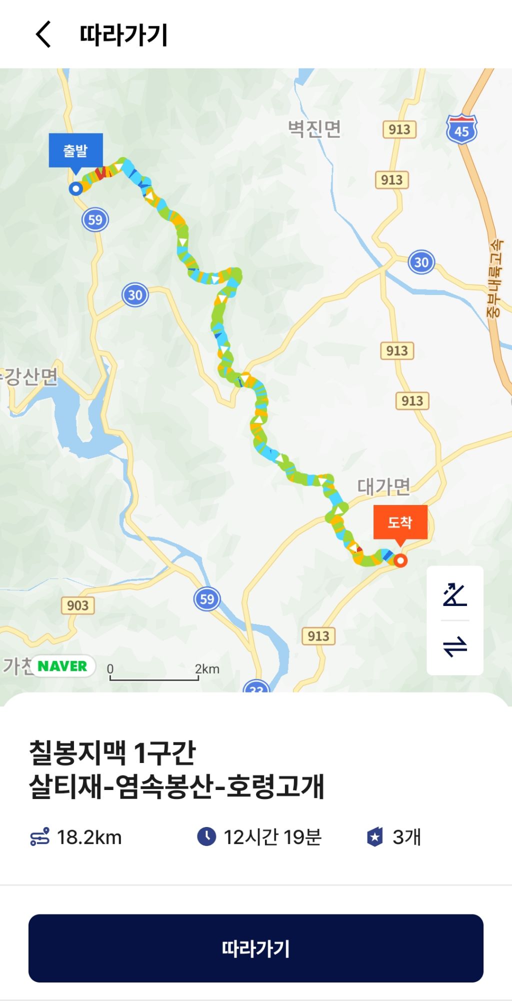 -당초 계획은 칠봉산을 넘어 하미기재 진행하려고 하였는데 갑자기 무더위로 힘겹게 호령고개까지 한 구간 완성합니다