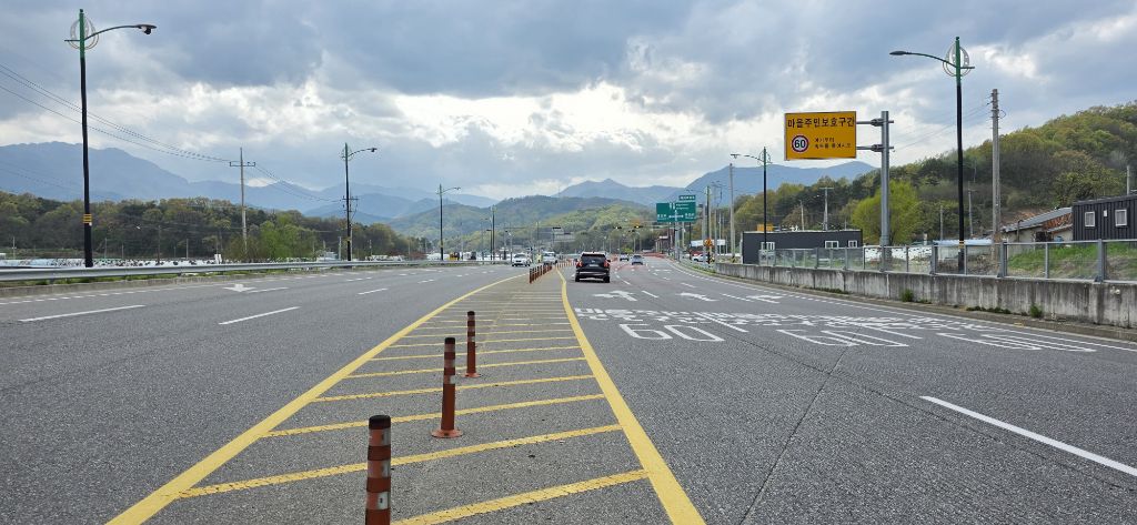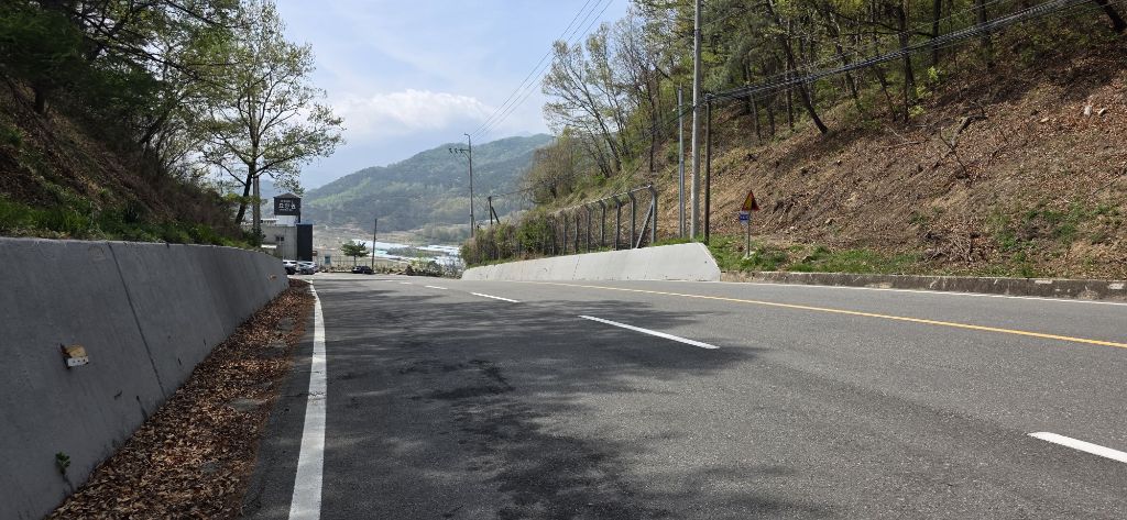 요리로 진행 말고 우측으로 마을로 우회하여 교차로로 횡단하여야 합니다