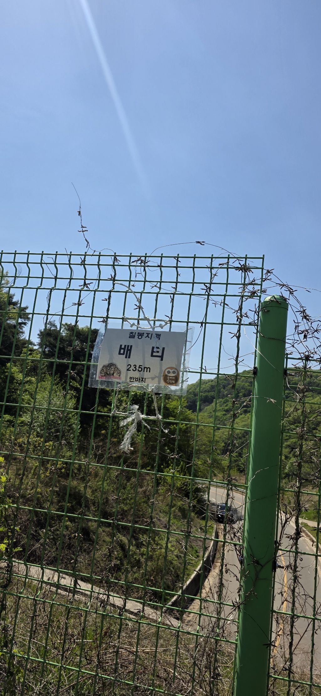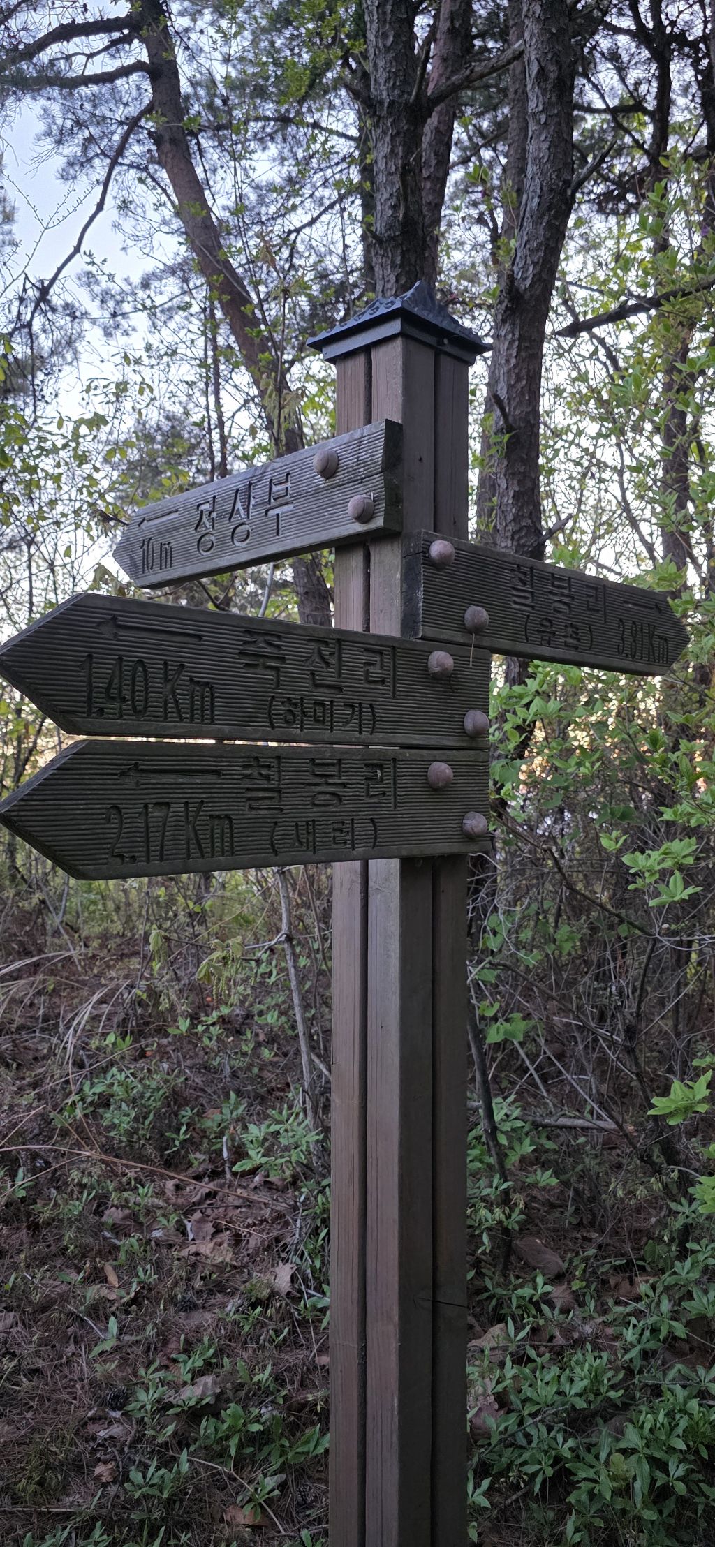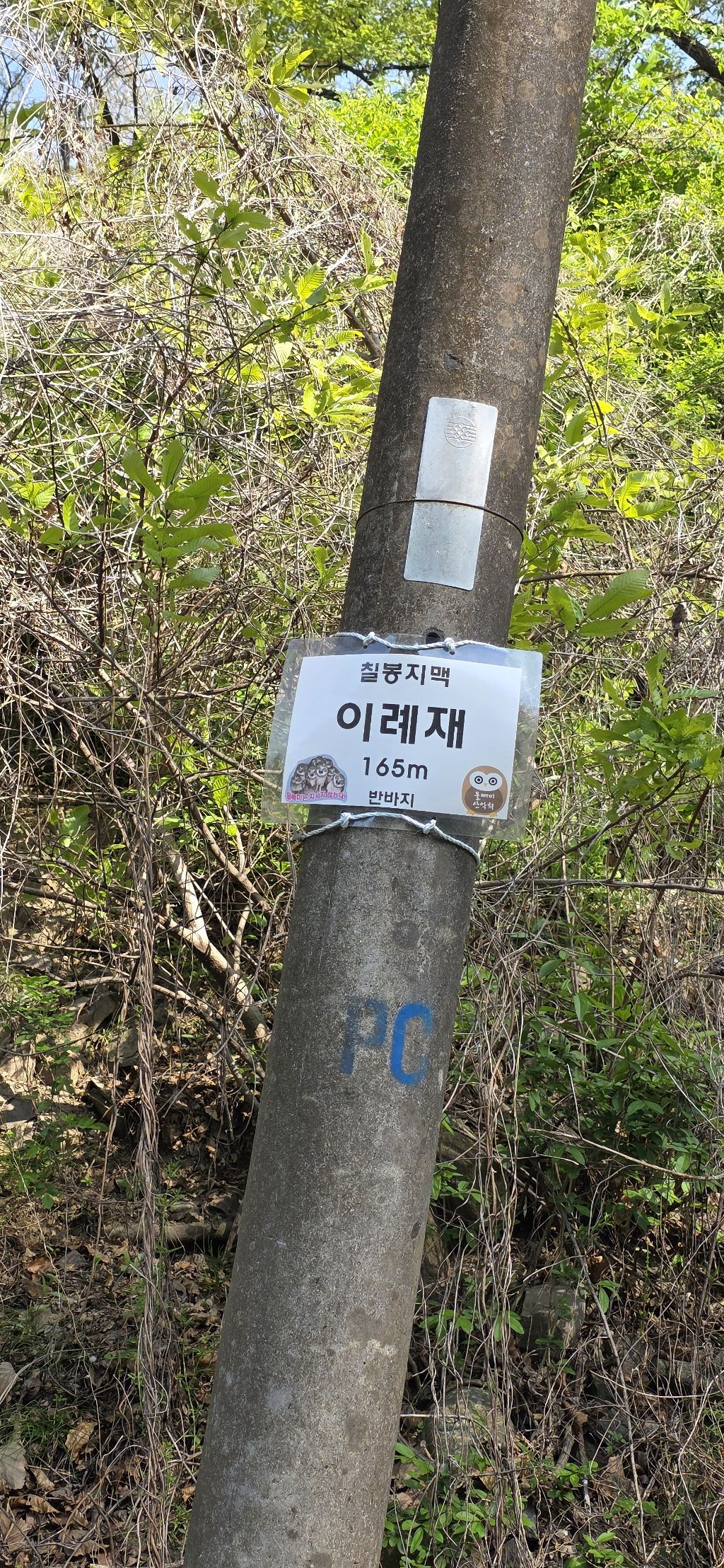 - 신반재를 지나고 올랐다가 내림으로 하여 배티재 생태통로로 내리고 요기서 점심을 먹고 물을 보충하여 생태통로로 하여 접속하오 진해이고 303.2봉을 만나고 진해이고 칠령재에서 오름으로 묵은 소나무 지대를 지나고 296.4 보을 지나고 내림으로 하여 이례재 도착인데 도착 전 길은 없고 방향 보고 내리면 묘지가 나오고 묘지 좌측으로 내리면 이례재입니다