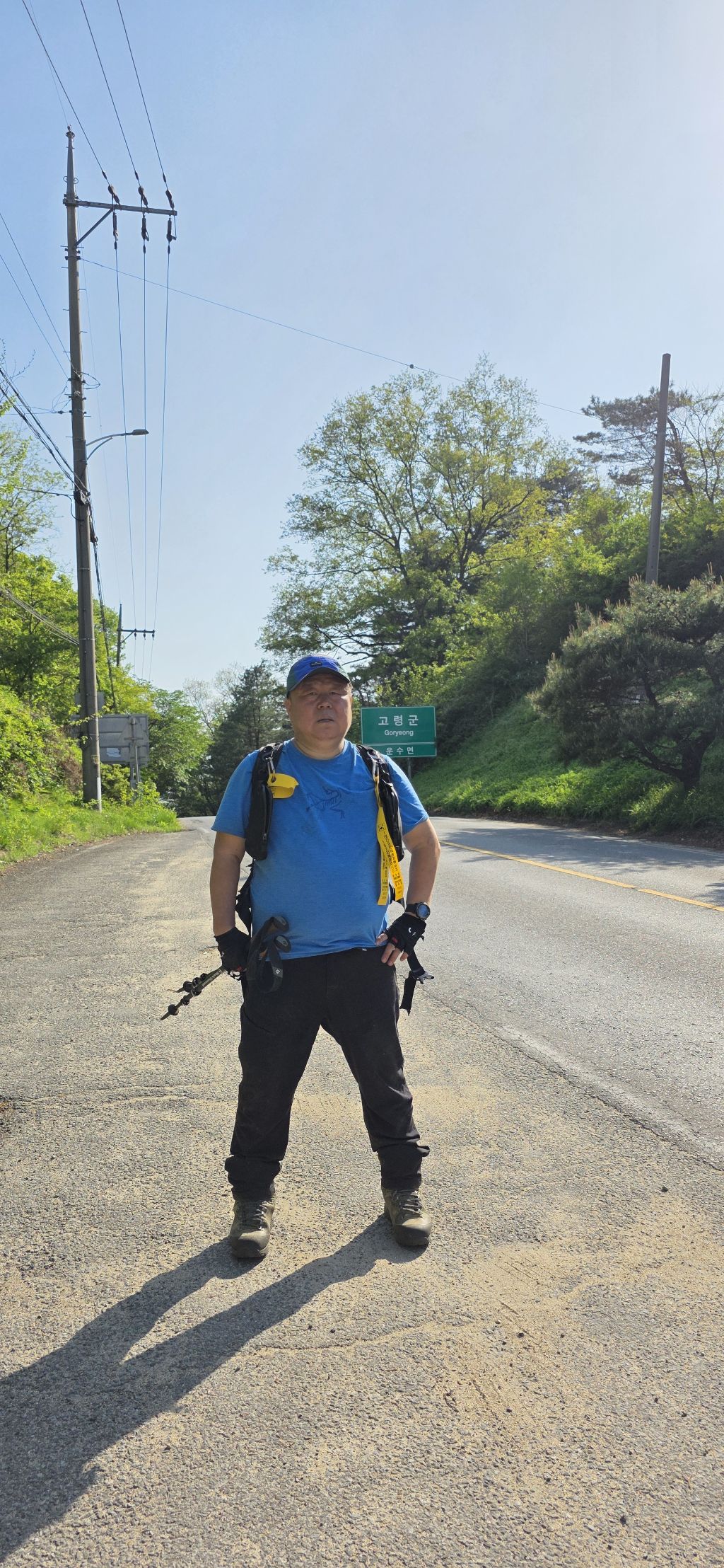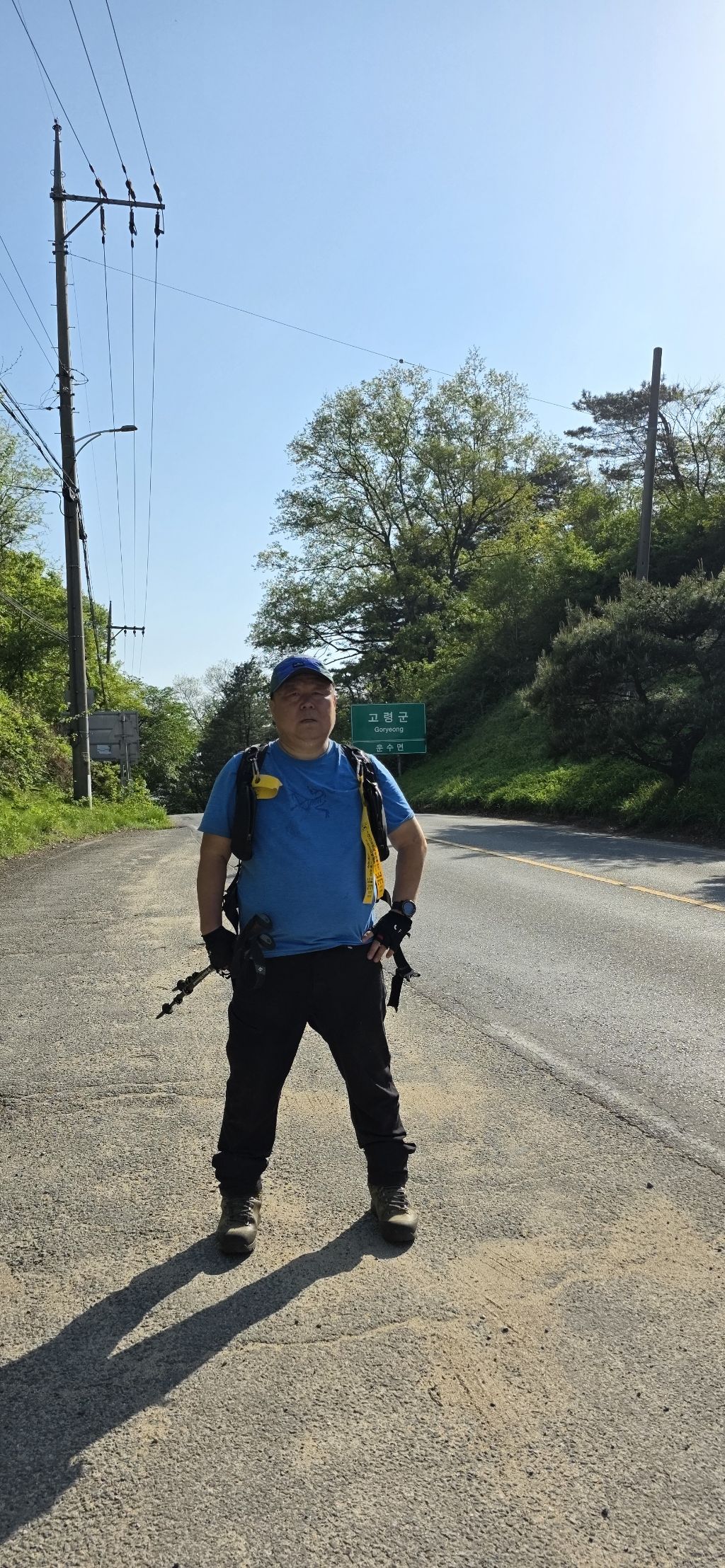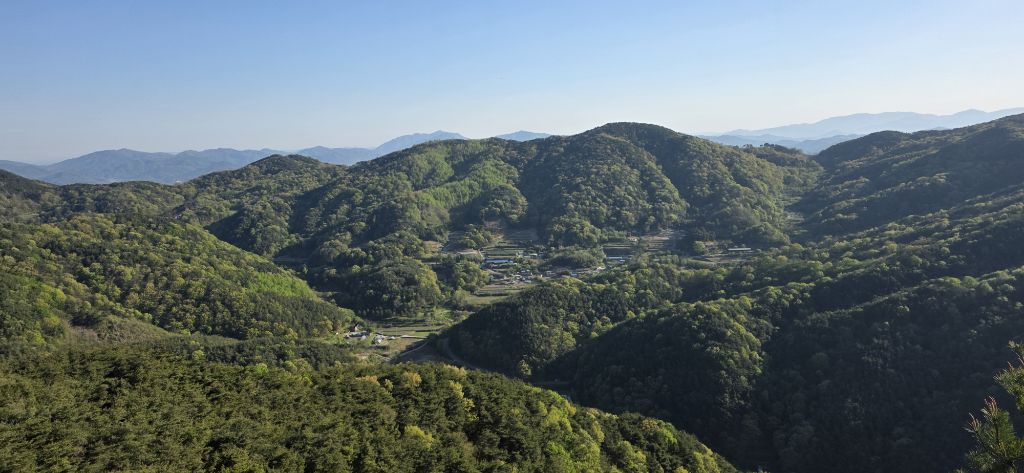 -인증을 하고 가는 방향 우측으로 하여 내리고 가야산과 수도지맥 산군들이 조망됩니다 하미기재로 내리고 요기서 김밥으로 에너지를 보충하고 다시 차도로 하여 진행이고 전봇대에서 좌측으로 접속하여 오르면 하미기재입니다