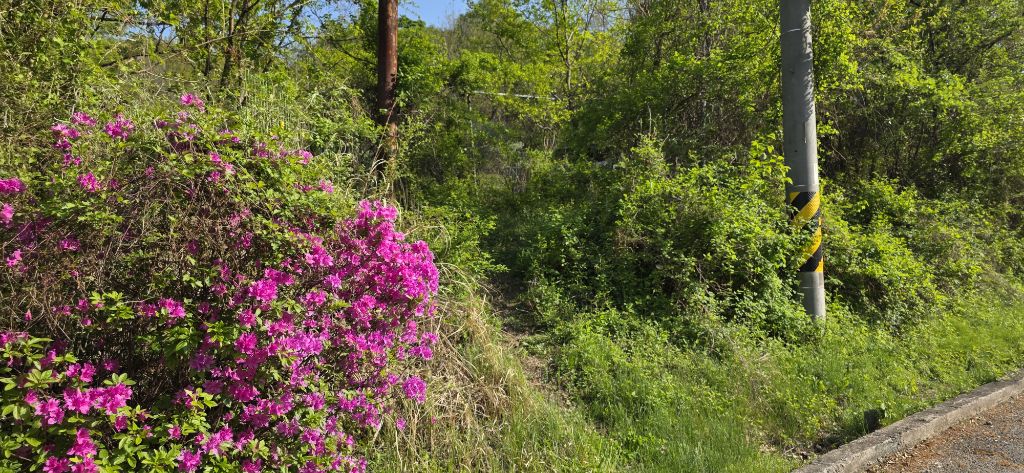 -잡목구간을 통과하여 오르면 506.6봉이고 지맥은 진행 후 좌틀로 내리면 민가이고 개들이 계속하여 짖어대고 하여 신속히 진행이고 맞은편으로 올라서 다시 내리면 임도와 만납니다 임도로 진행을 하여도 되겠습니다 진행 후 다시 좌측으로 접속하여 진행이고 553.2 봉 삼각점봉입니다