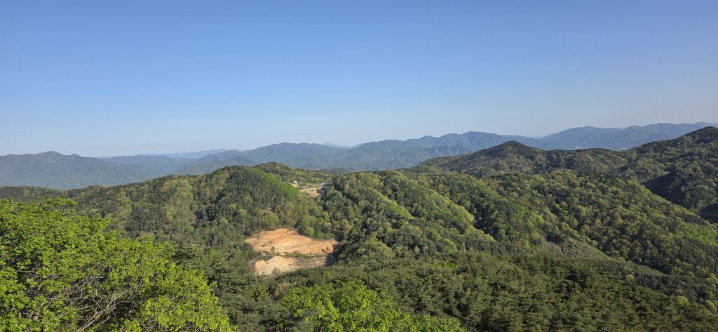 -진행하여 509.0봉을 만나고 요기서 알바를 합니다 트랙을 보고 진행하여 524,1봉 추산을 만납니다 그런데 배낭을 미리 챙긴다는 게 물을 넣었는데 배낭이 풀려있어서 물이 차량으로 빠졌나 물이 없어서 물 없이 10km 정도 진행입니다 별 이벤트가 많은 지맥길입니다
