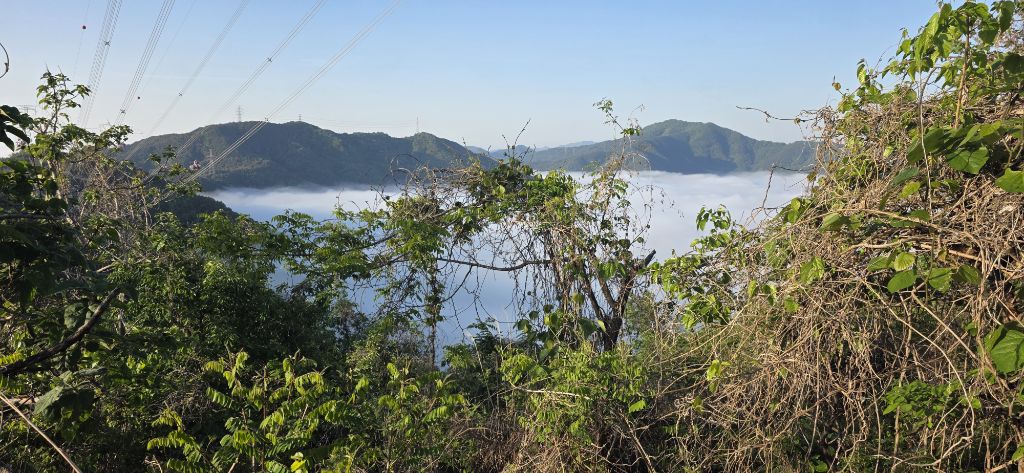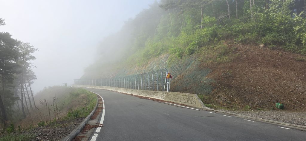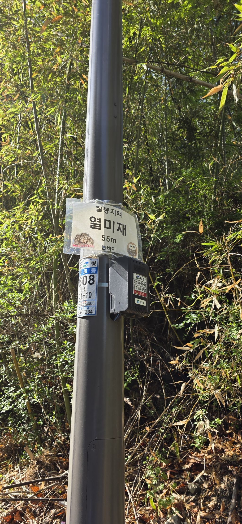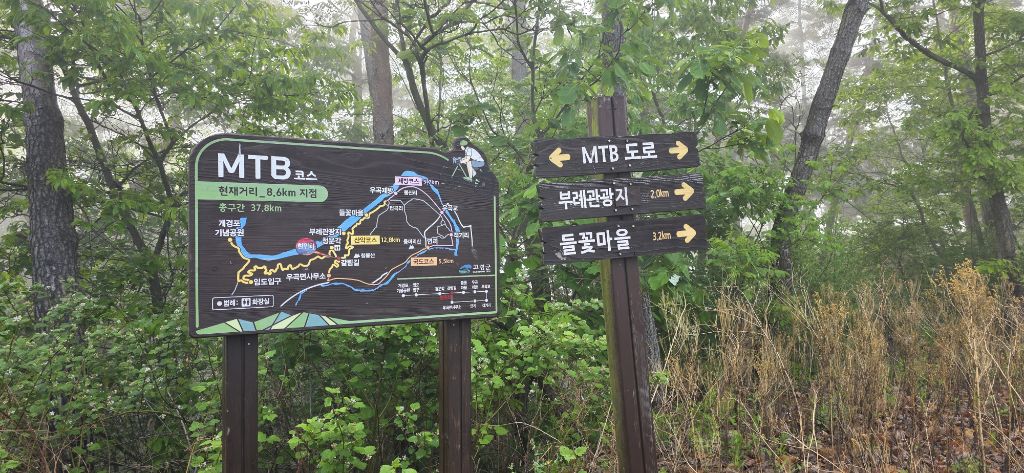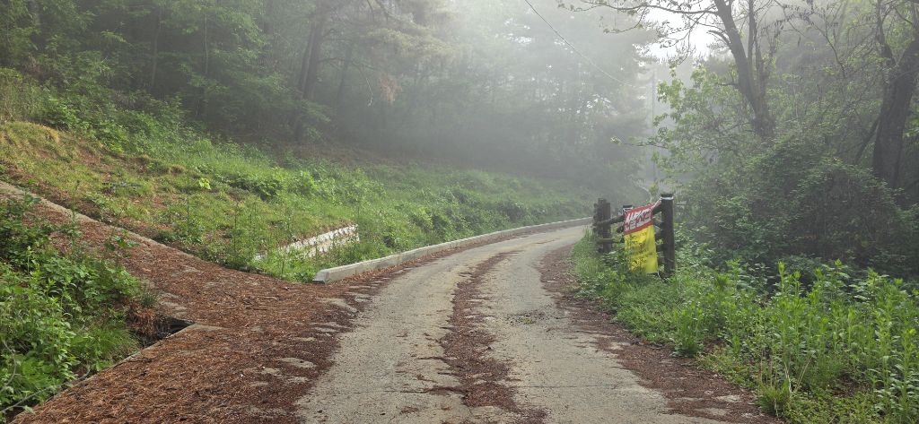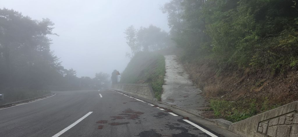-연휴 2일째 산행하기 위해 열미재 도착이고 안개가 자욱합니다 앞을 분간하기 어려울 정도입니다 열미재 날머리 맞은편 묘지로 치고 오르자 물탱크이고 다시 임도가 나오고 임도로 진행 후 좌측으로 접속하여 전기철탑 수레길로 진행하여 오름으로 하여 진행이고 첫 번째 철탑 후 길이 보이기 시작합니다