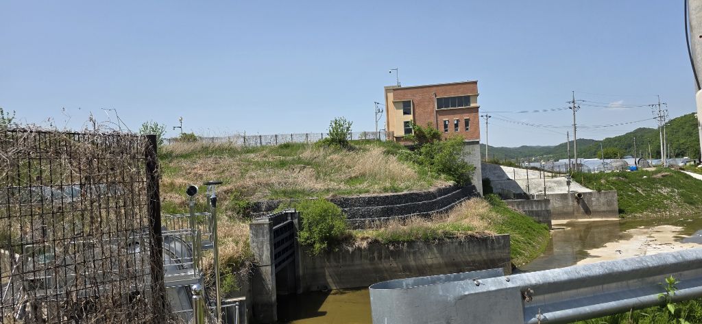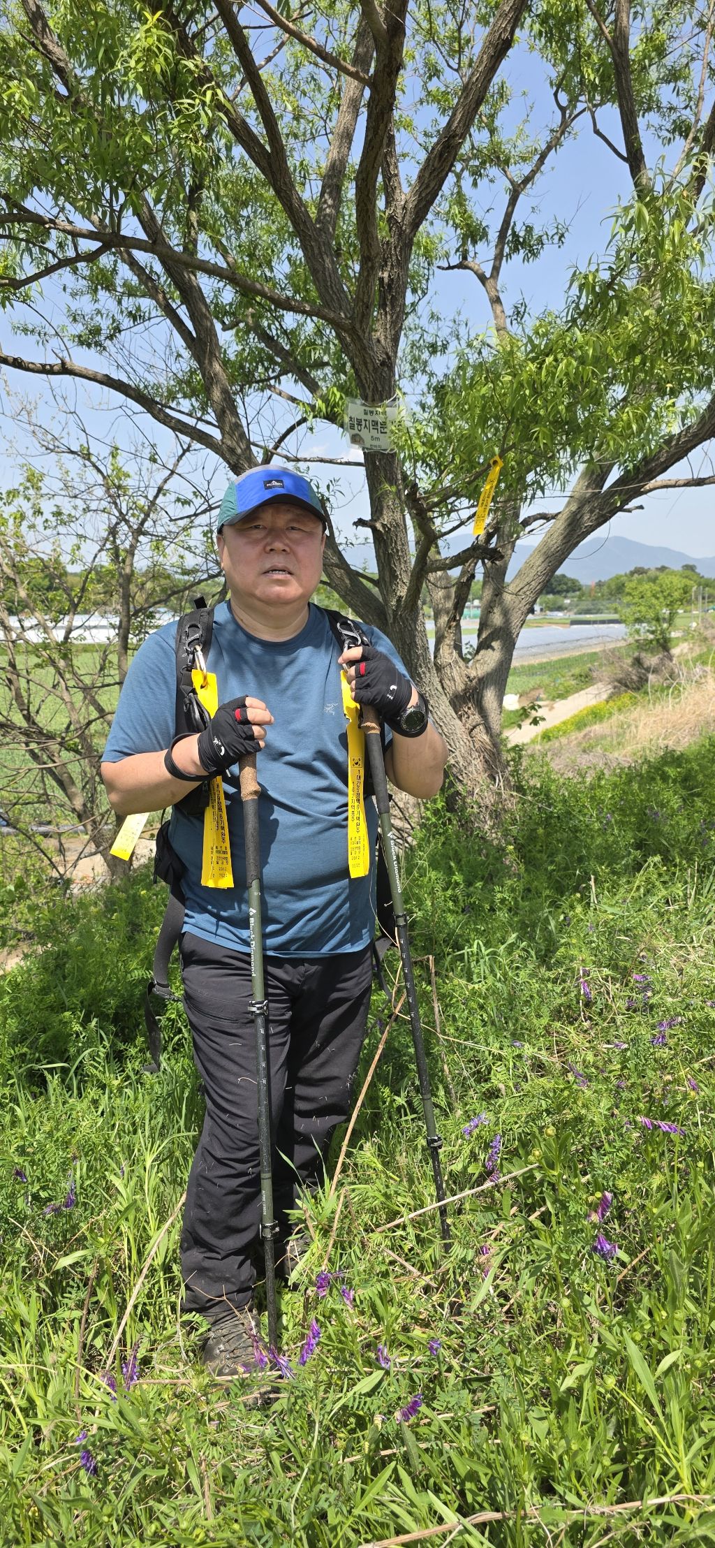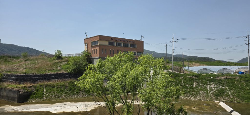 -진행하여 59.9 봉도 만나고 도로를 건너고 진행이고 45.6봉 산패가 없어졌습니다 진행하여 묘지로 내리고 민가 옥상으로 하여 계단으로 내리고 객기리 마을입니다 마을 뒷산 42.9 봉을 오르고 내려서 농로로 하여 우곡제방으로 오릅니다