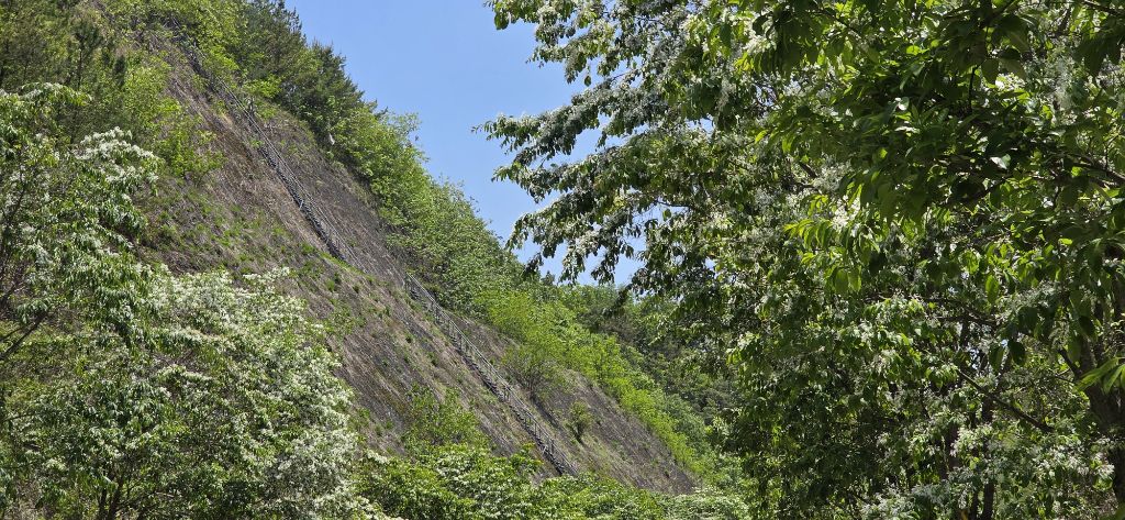 엄청난 절개지 철계단입니다