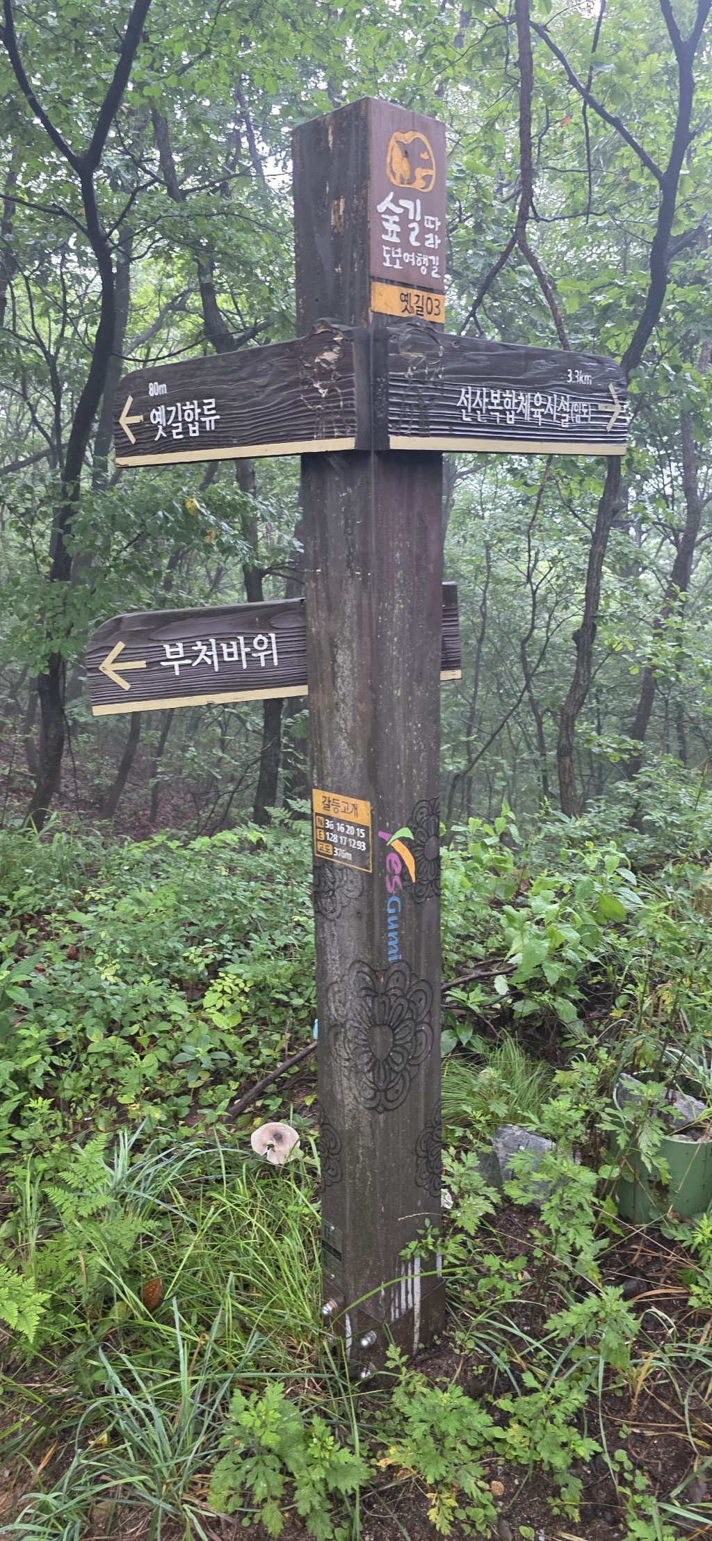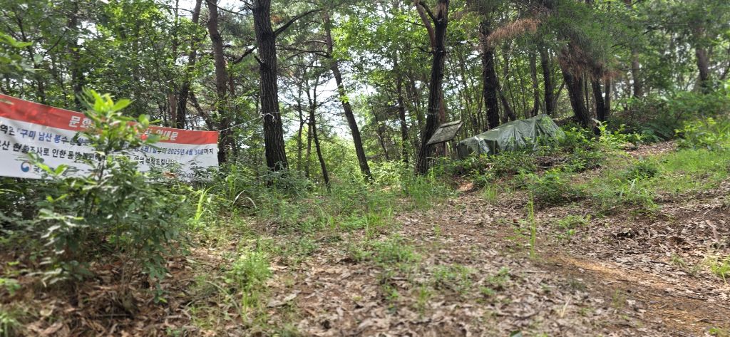 푯말 있는 기양지맥 날머리입니다 요기서 선산파크골프장을 통과하여 합수점까지 진행입니다