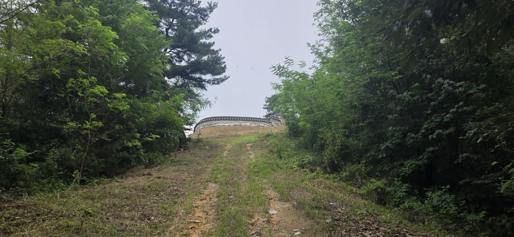 - 다시 오름으로 진행하여 담으로 둘러 쳐진 묘지를 만나고 임도로 보이고 이제부터는 임도로 진행입니다 묘지위의 158.9 봉을 지나서 내리고 차도이고 요기서 선산파크 골프장을 지나서 좌 낙동가 우 감천을 인증을 하고 다시 돌아 나와서 기양지맥을 3구간으로 하여 완성합니다 날씨가 무척이나 덥습니다 더운 날 지맥길 날로 어려워집니다