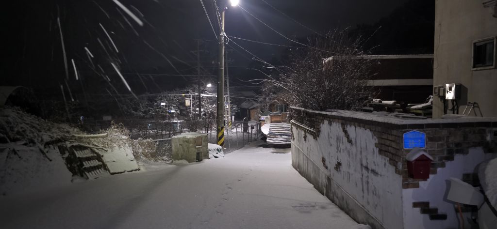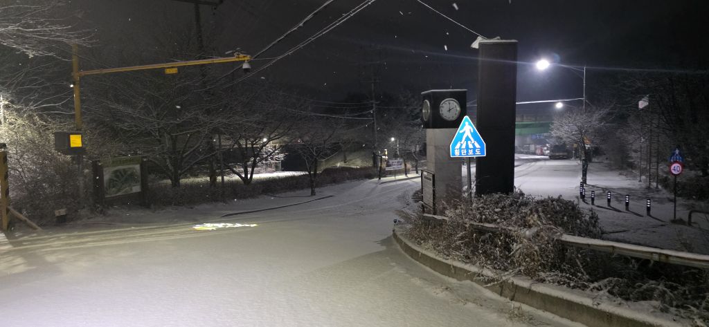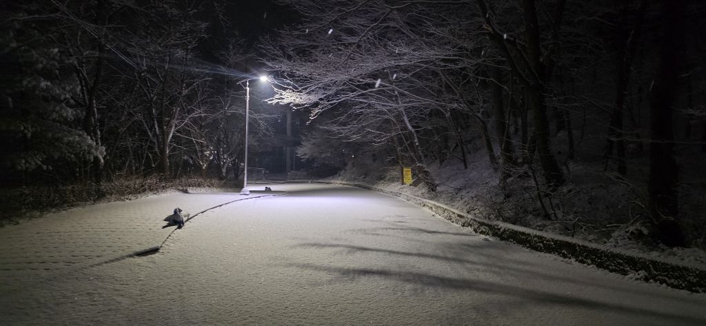 눈 쌓인 지매길 세천공원입니다