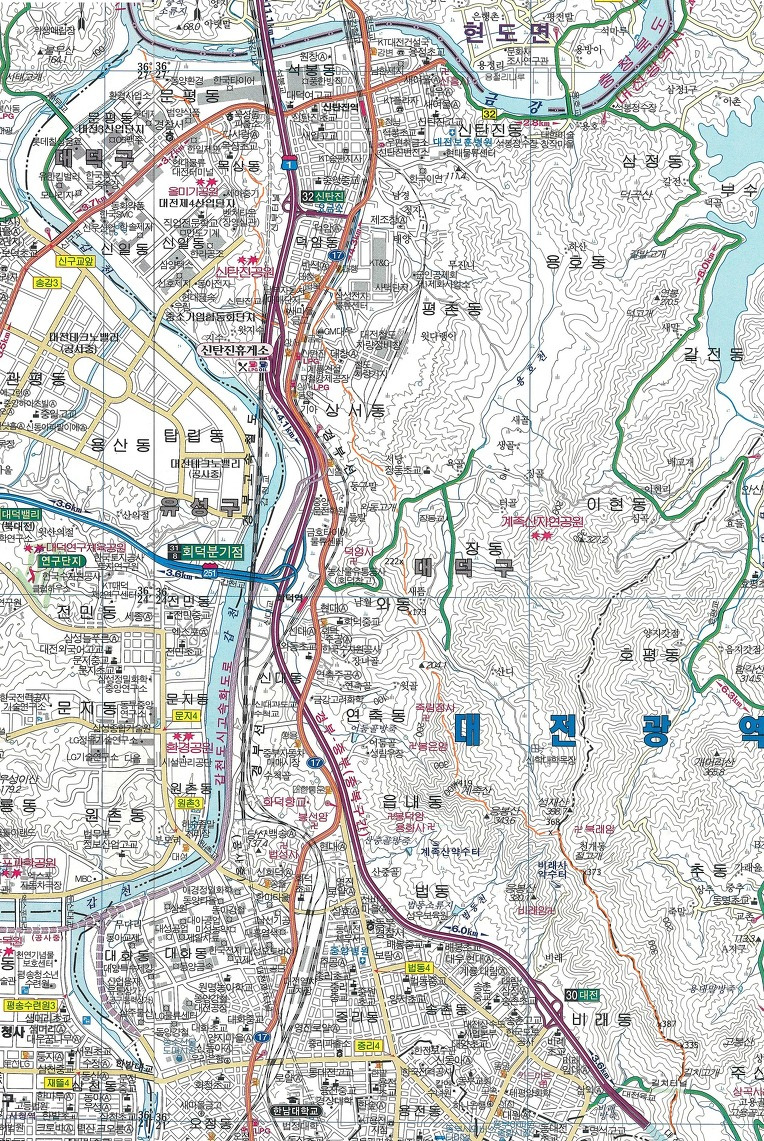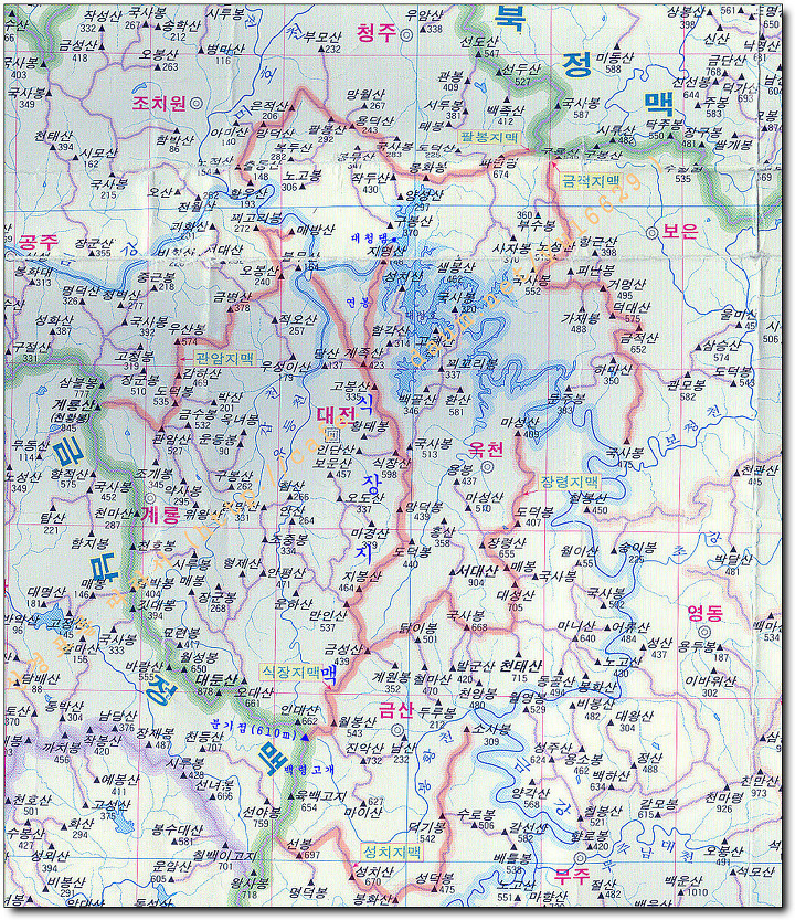 식장지맥 날머리 좌 갑천 우 금강 합수점입니다