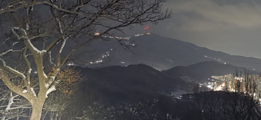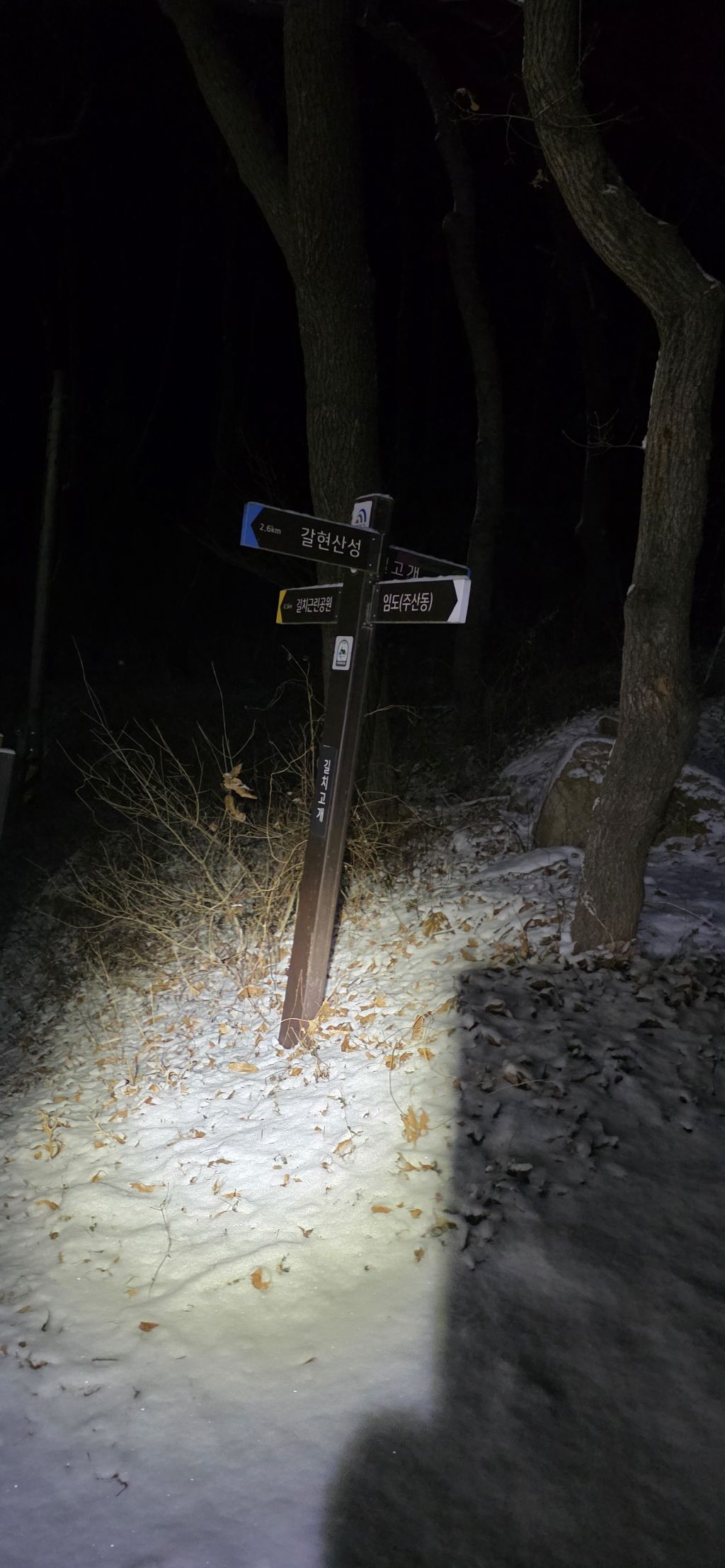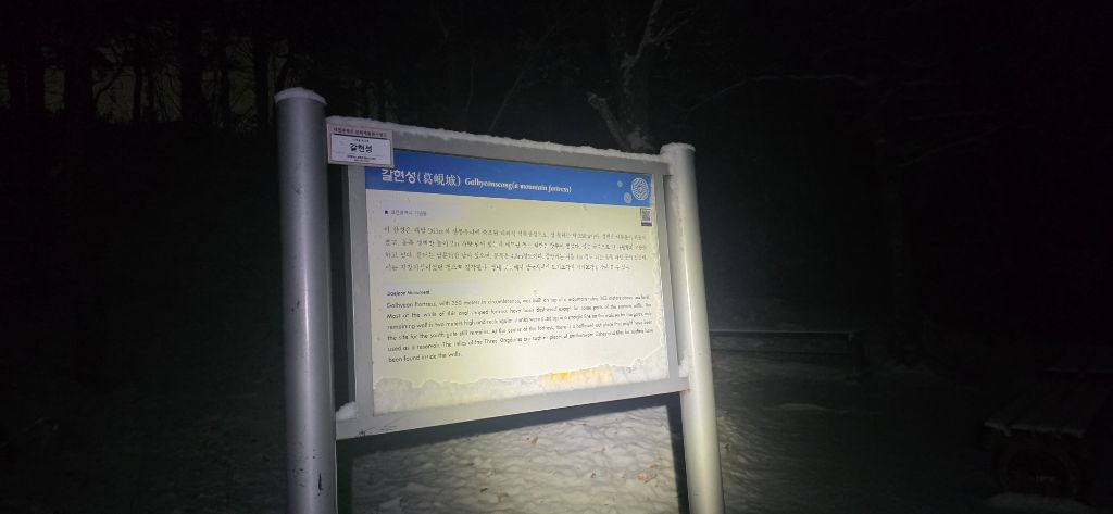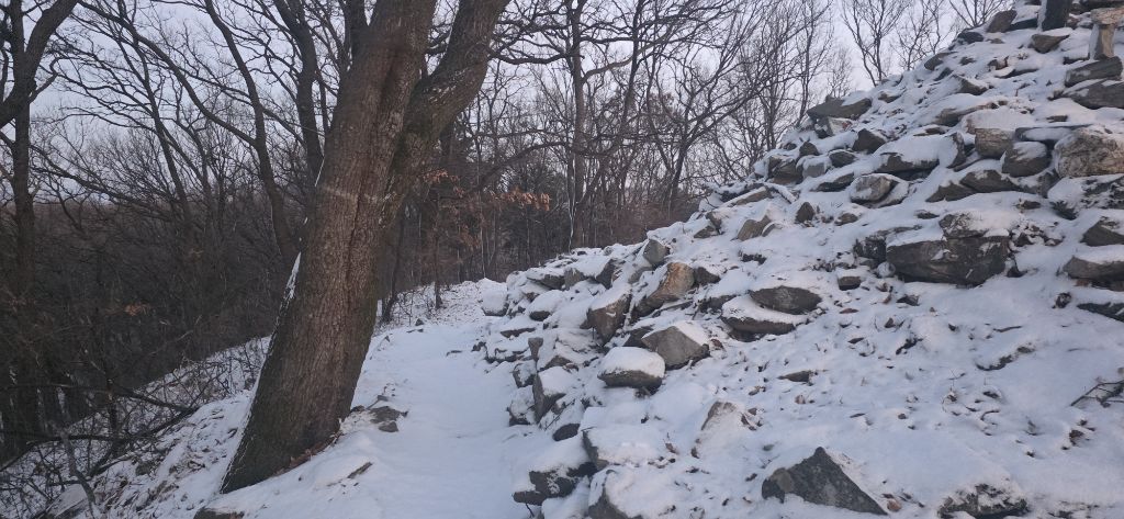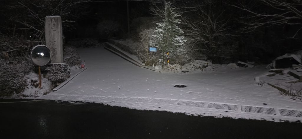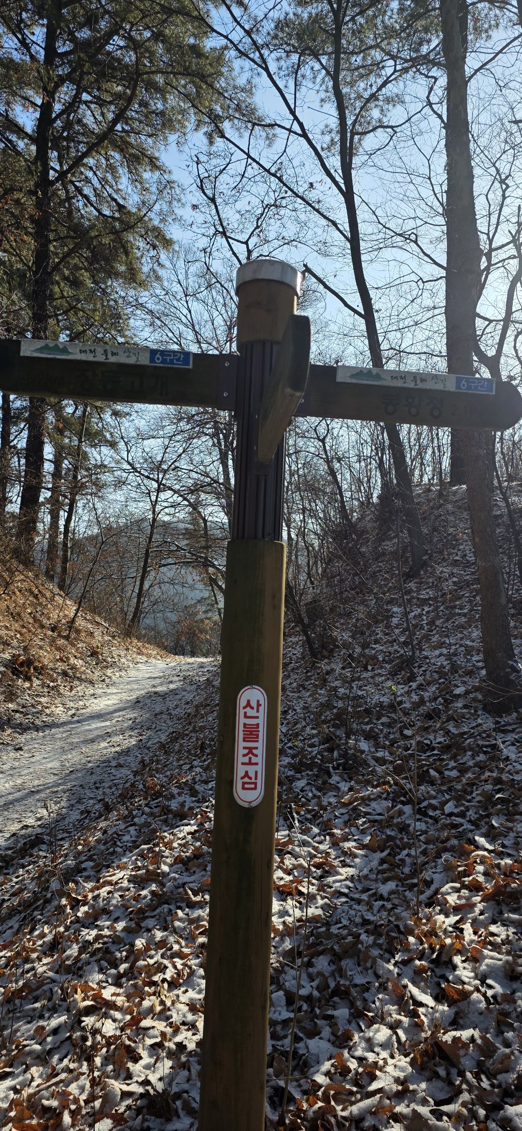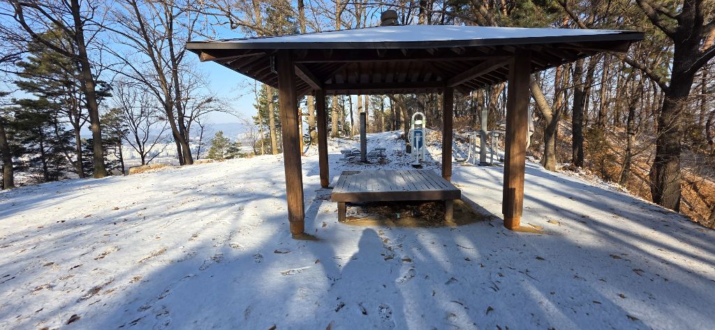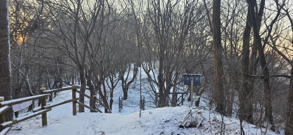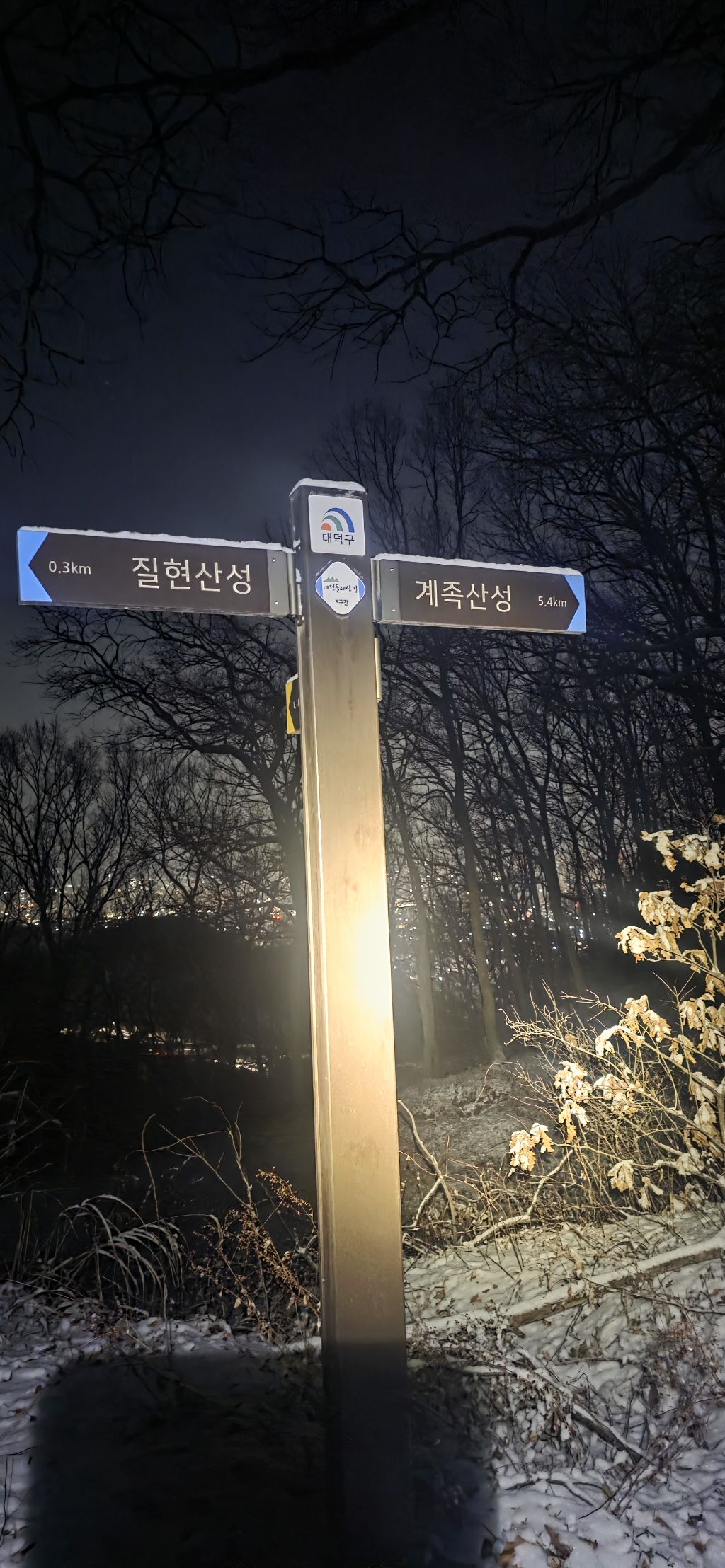 -식장지맥을 완성하기 위해서 지난번 날머리 세천공원 주차장으로 갑니다 겨울철 세천공원에서 식장산까지 차도는 폐쇄입니다 빙판길 위험하여 겨울철 도로는 폐쇄입니다 주차장 도착이고 잠시 휴식인데 새벽부터 눈이 오기 시작합니다 등산에 영향을 미칠정도는 아닌 눈이고 둘레길과 겹쳐서 등로가 양호하여 강행하기로 합니다