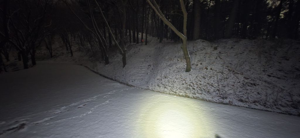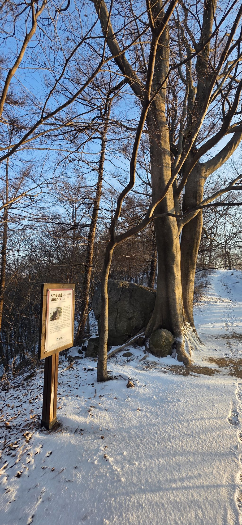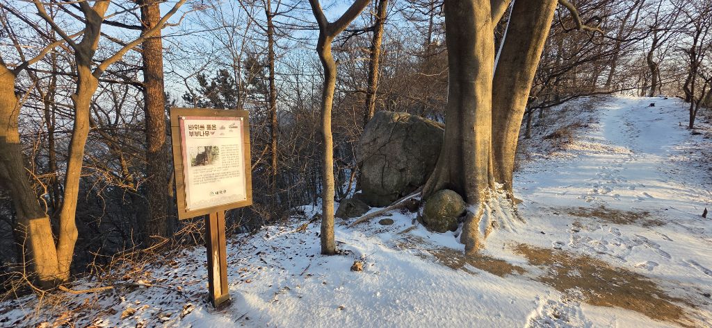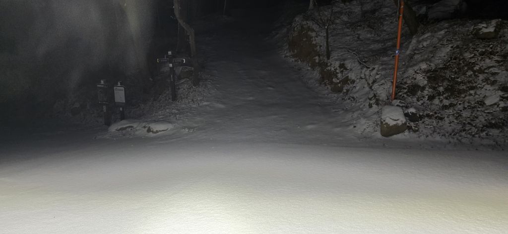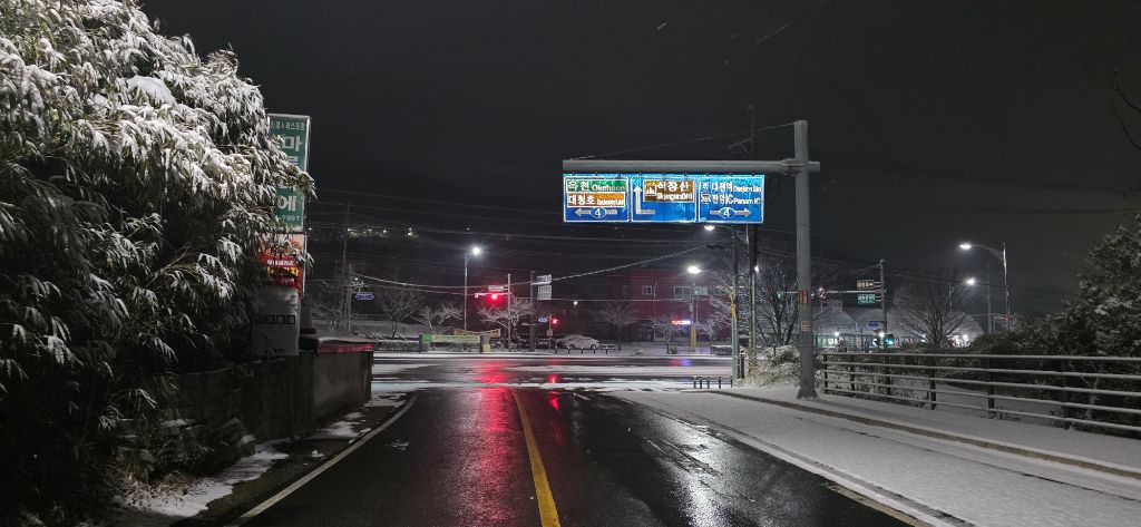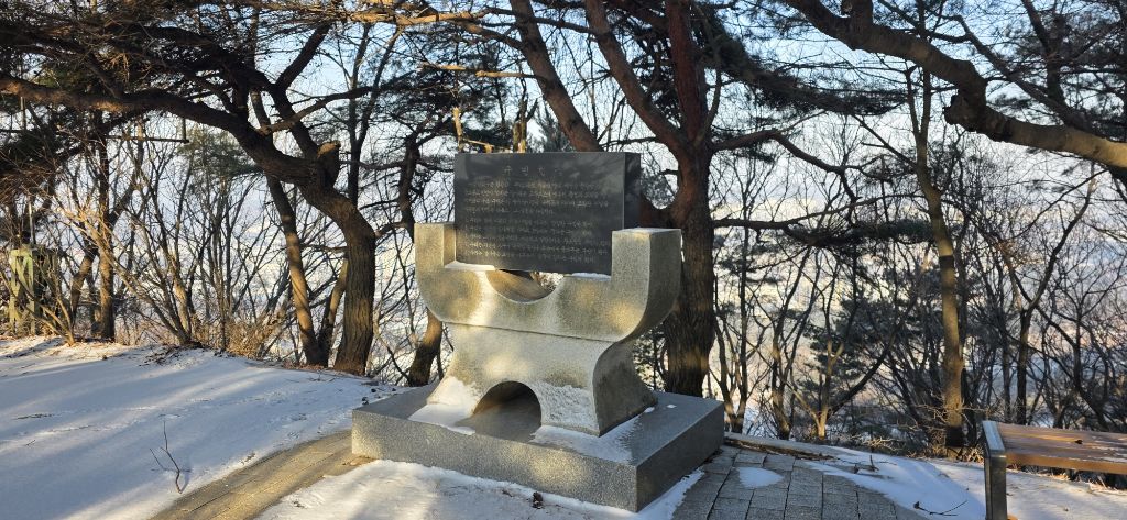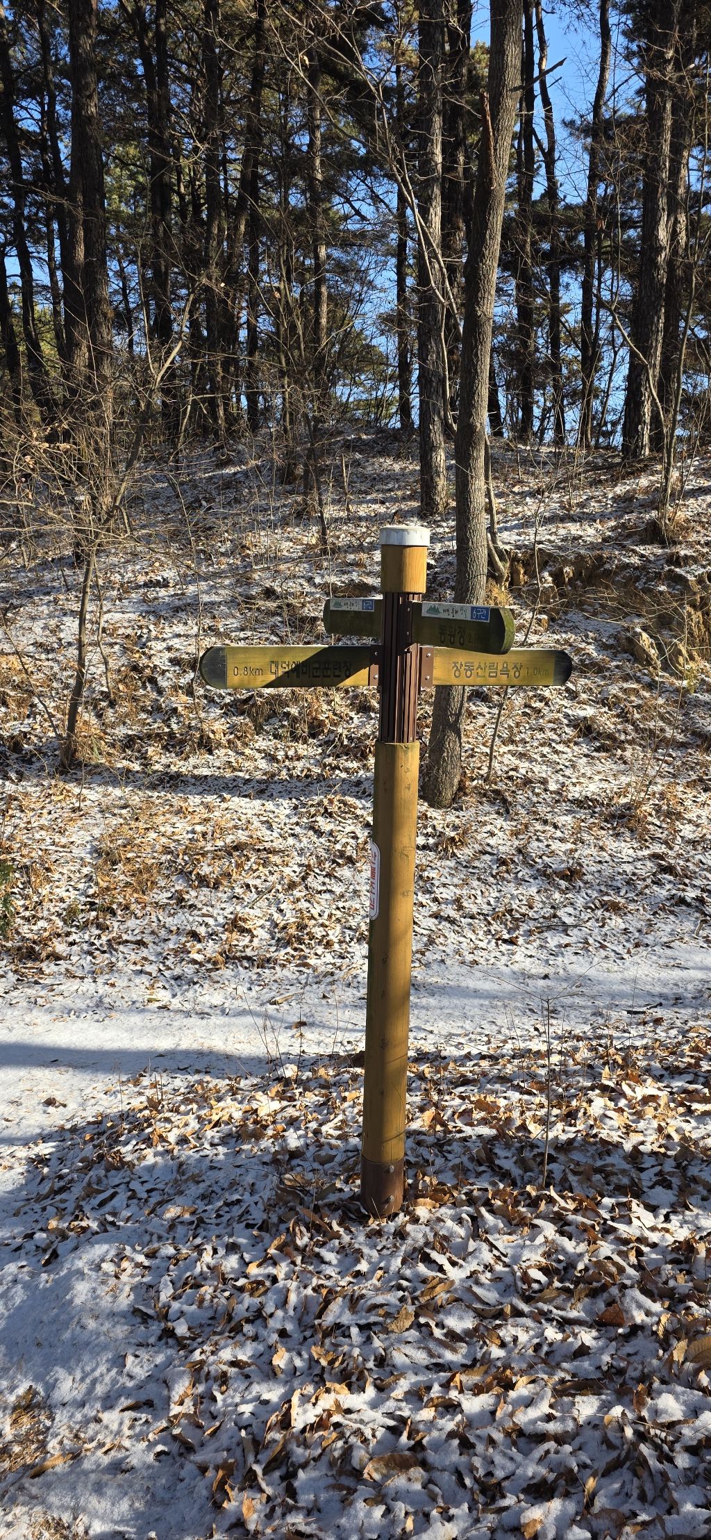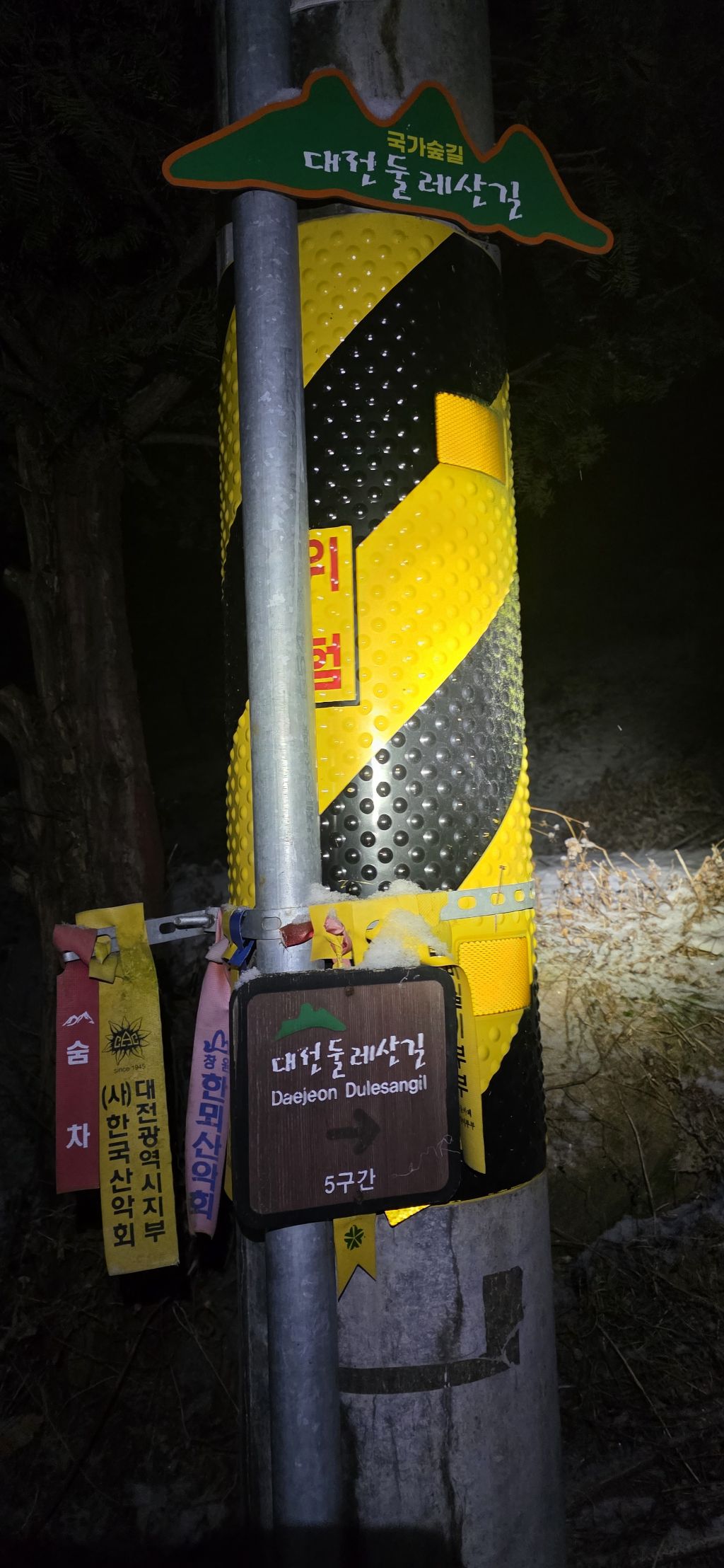 -식장지맥을 완성하기 위해서 지난번 날머리 세천공원 주차장으로 갑니다 겨울철 세천공원에서 식장산까지 차도는 폐쇄입니다 빙판길 위험하여 겨울철 도로는 폐쇄입니다 주차장 도착이고 잠시 휴식인데 새벽부터 눈이 오기 시작합니다 등산에 영향을 미칠정도는 아닌 눈이고 둘레길과 겹쳐서 등로가 양호하여 강행하기로 합니다