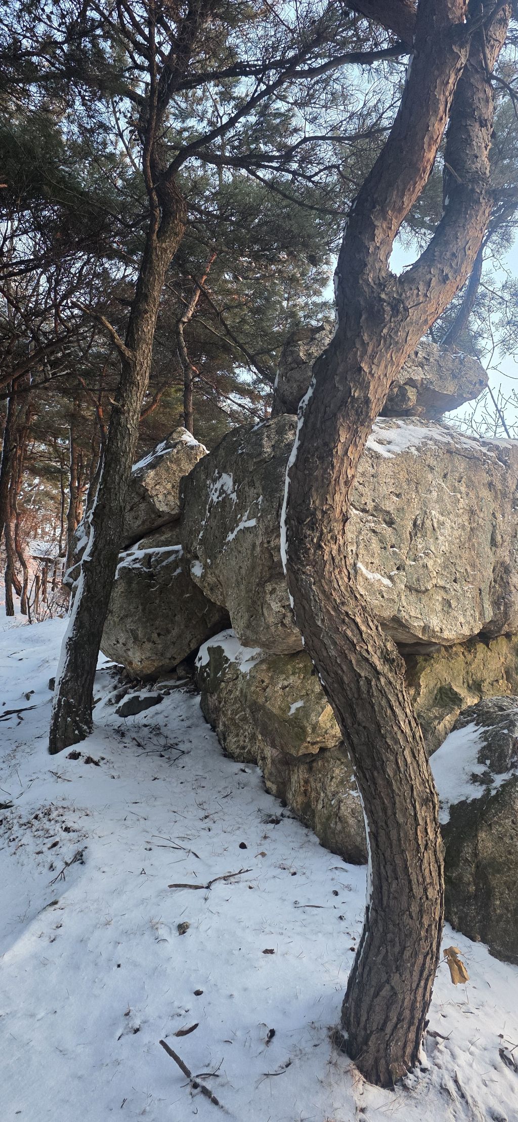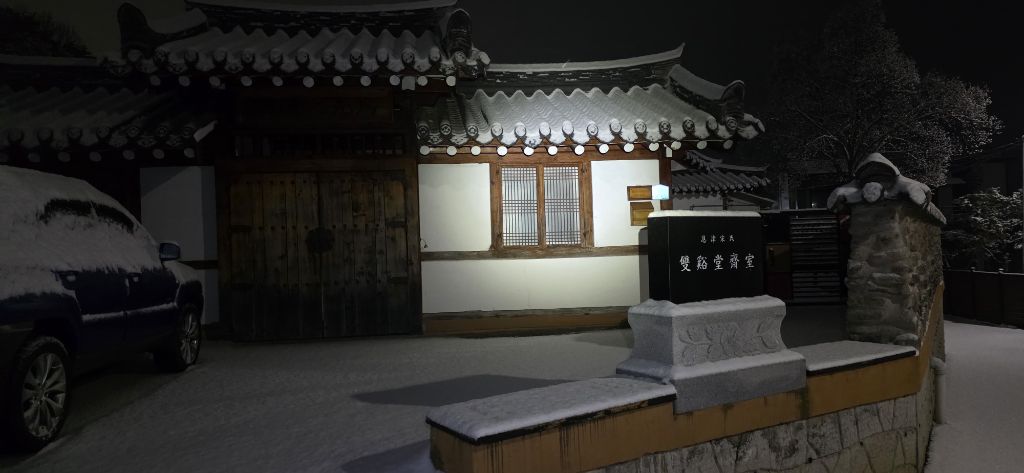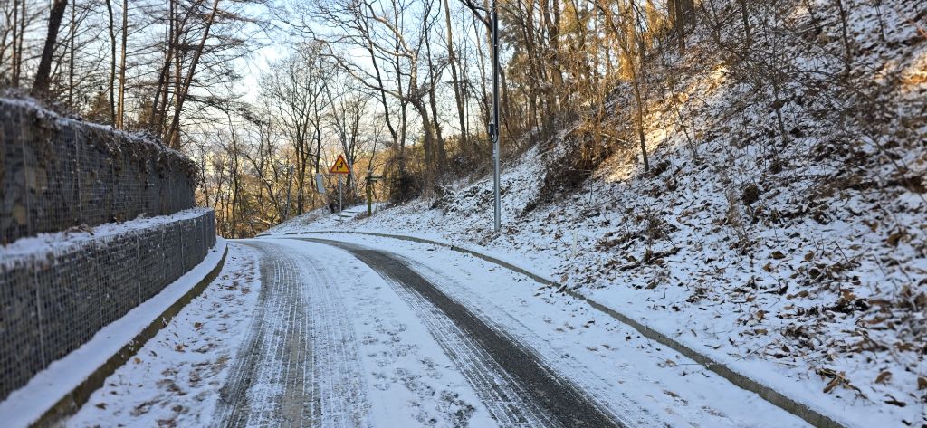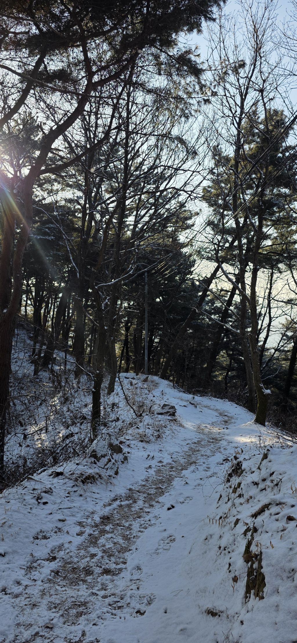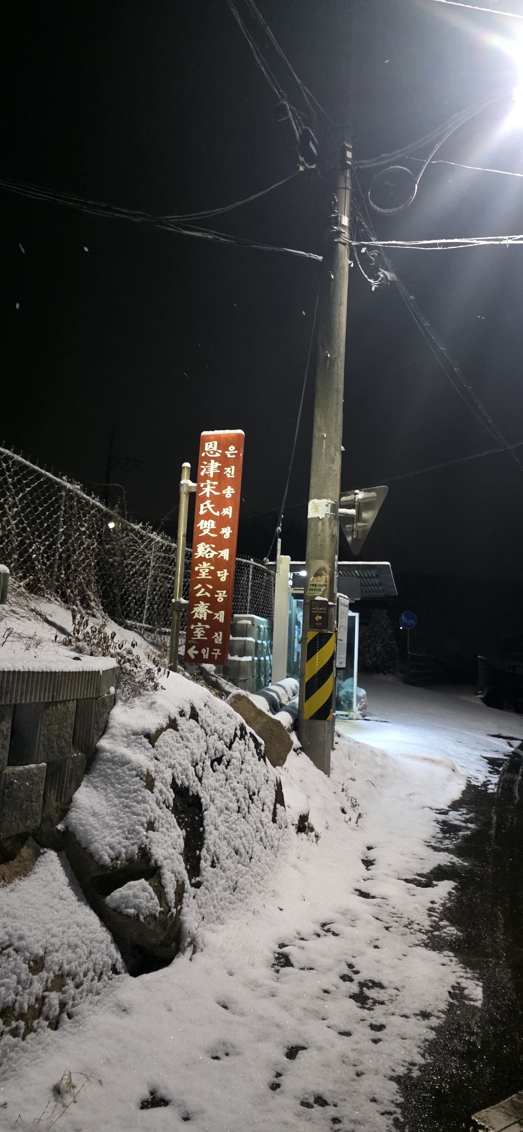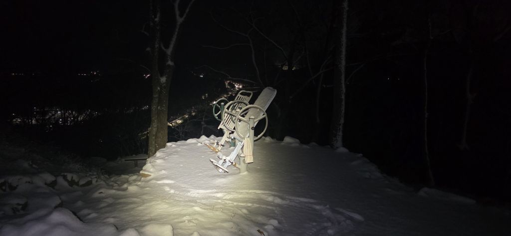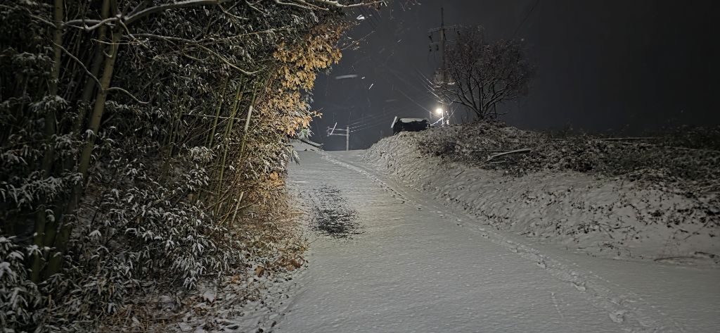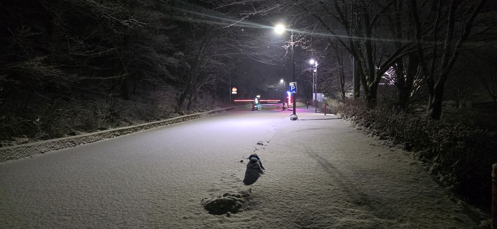 -식장지맥을 완성하기 위해서 지난번 날머리 세천공원 주차장으로 갑니다 겨울철 세천공원에서 식장산까지 차도는 폐쇄입니다 빙판길 위험하여 겨울철 도로는 폐쇄입니다 주차장 도착이고 잠시 휴식인데 새벽부터 눈이 오기 시작합니다 등산에 영향을 미칠정도는 아닌 눈이고 둘레길과 겹쳐서 등로가 양호하여 강행하기로 합니다