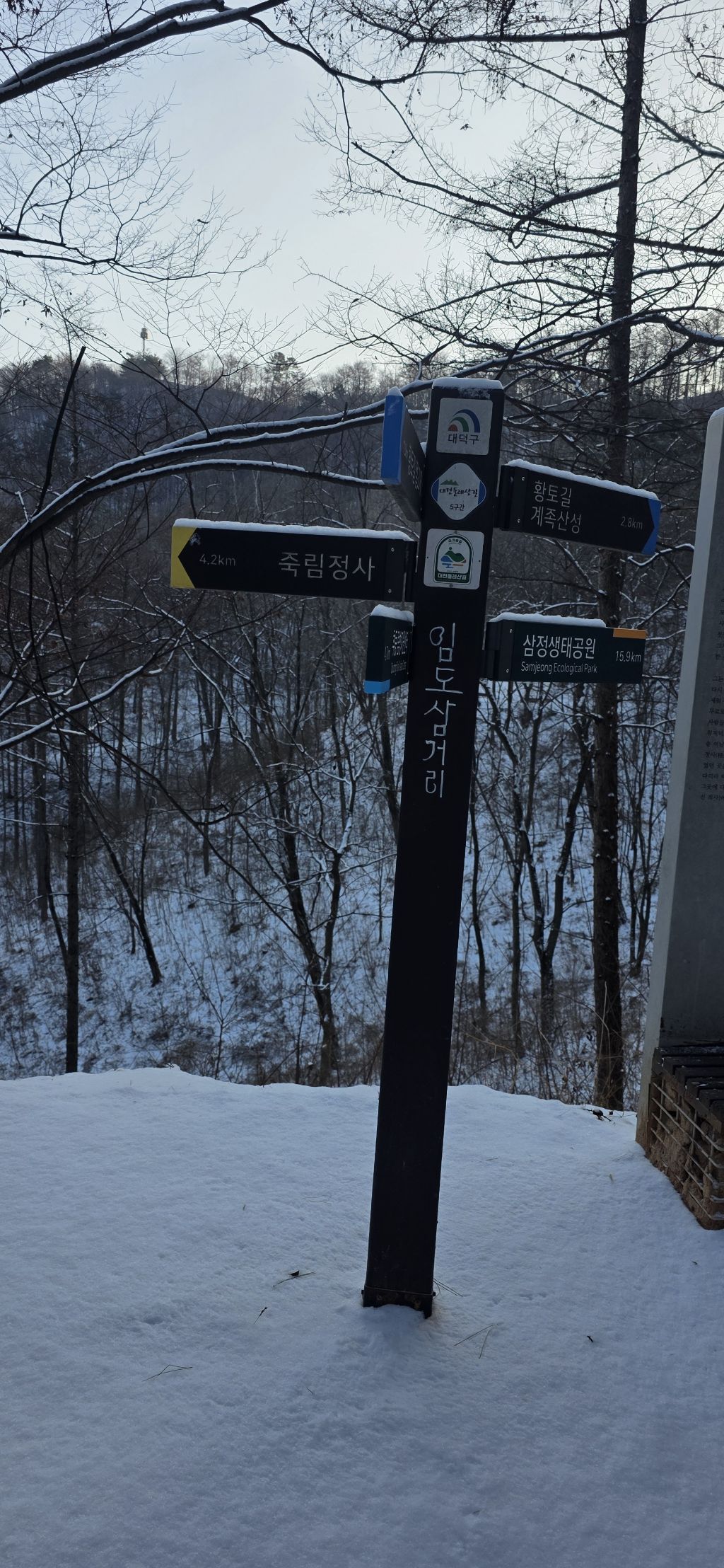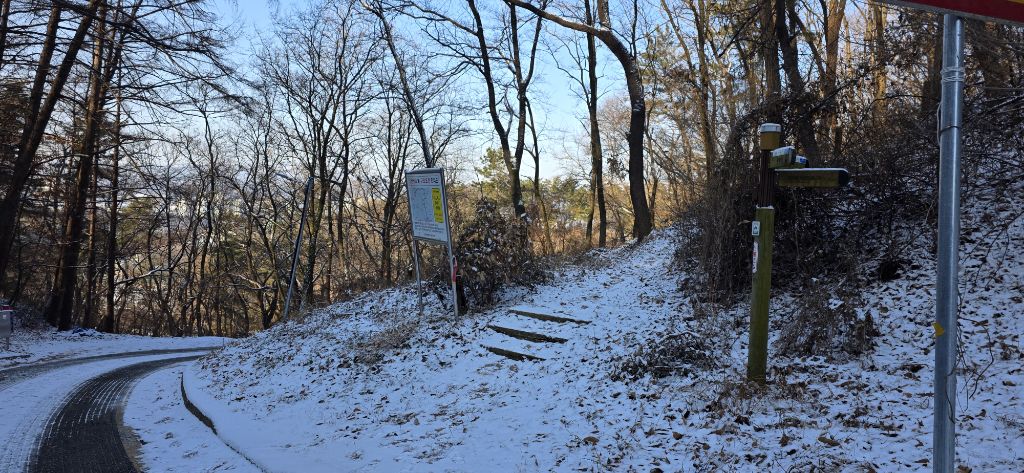 세천공원 차단기 그래도 3구간은 도심 둘레길로 등로가 양호하여 눈산행으로도 양호합니다